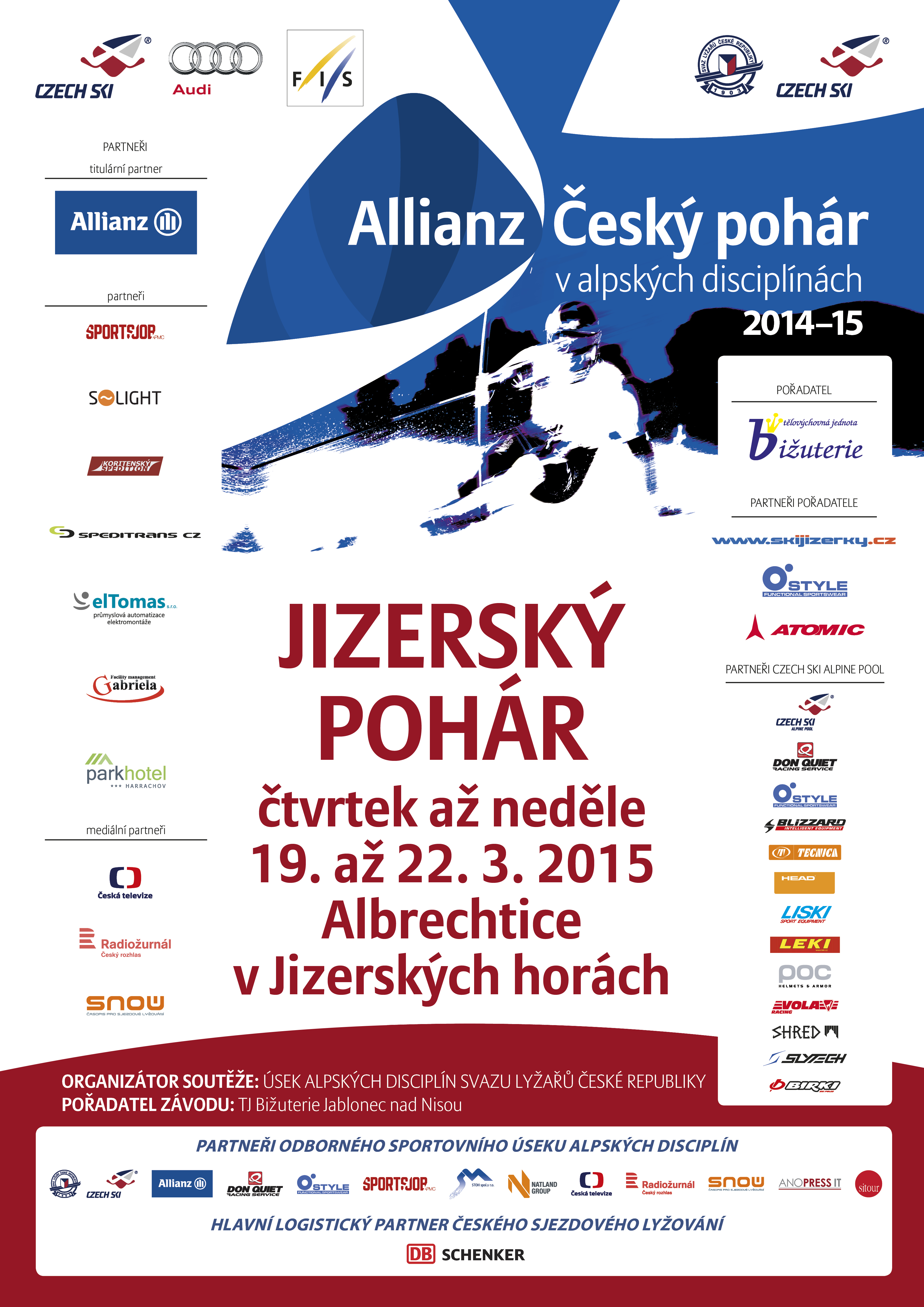 Celkem čtyři závody jsou na programu ALLIANZ Českého poháru v alpských disciplínách od čtvrtka do neděle 19.-22. března 2015 v Albrechticích v Jizerských horách.