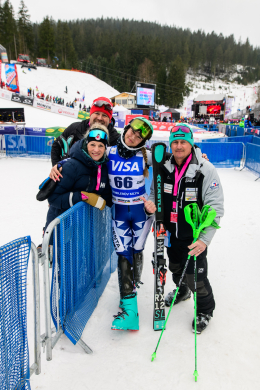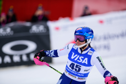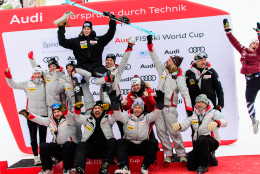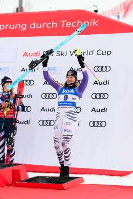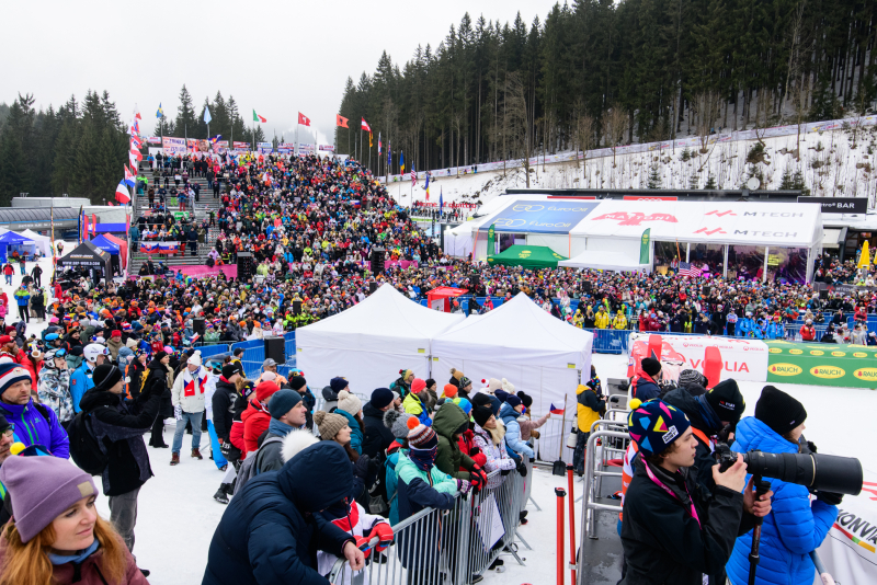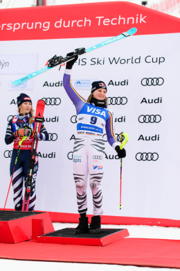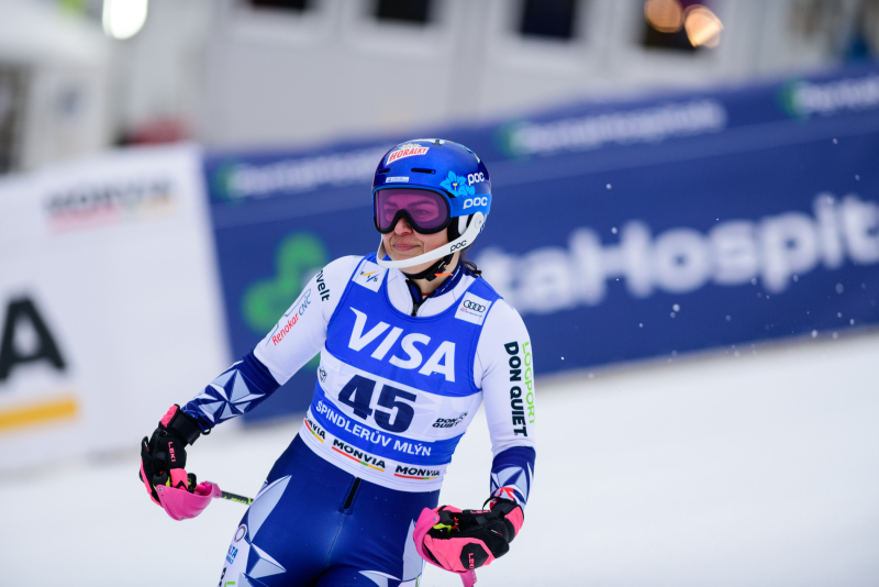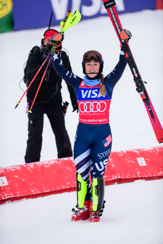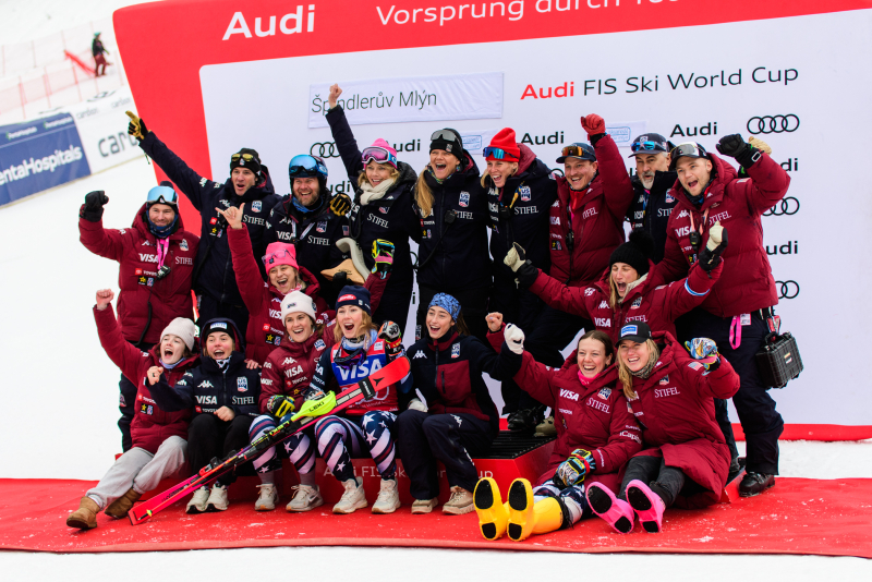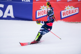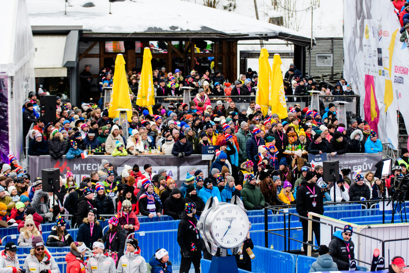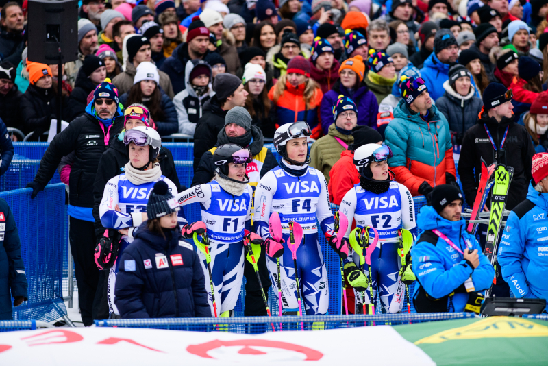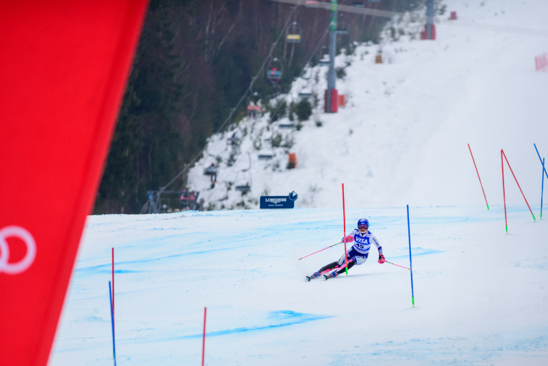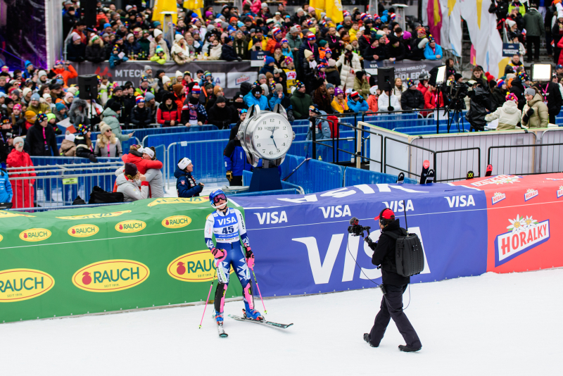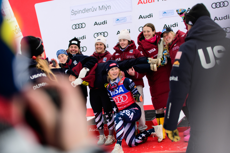 Špindlerův Mlýn byl v neděli svědkem historického okamžiku. V úžasné atmosféře ovládla slalom Američanka Mikaela Shiffrinová a stala se první ženou v dějinách, která získala devět malých křišťálových glóbů. Na stupních vítězů jí sekundovaly Švýcarka Camille Rastová a Němka Emma Aicherová. Domácí publikum potěšil výkon Martiny Dubovské, která prolomila prokletí letošní sezony a brala body za povedenou 21. příčku. Foto: Josef Štěpán