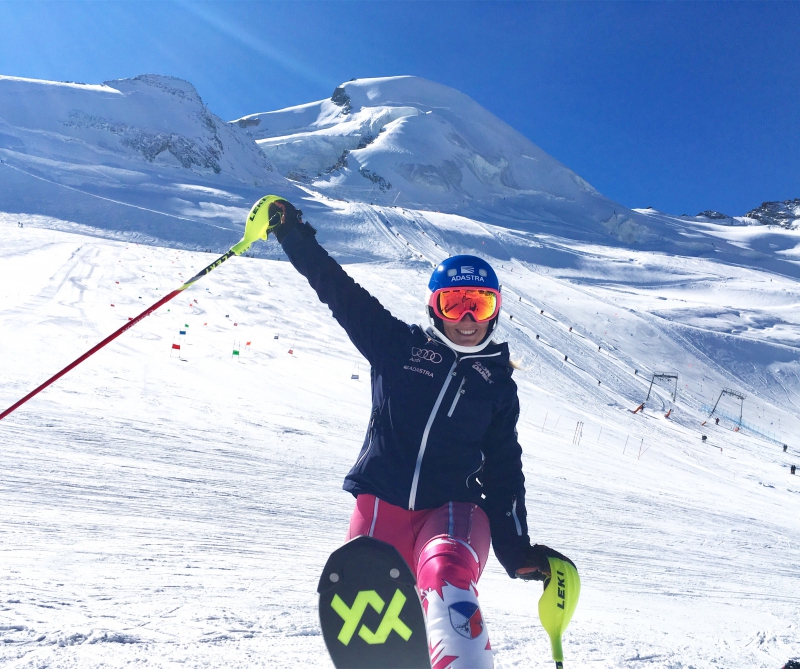 Předtím se ještě Tereza připojila ke kondičnímu soustředění juniorů a mužů v Nymburce a po zasazení svého stromu už opět spěchala na lyže do Saas - Fee. Tentokrát se připojila k ženám z „A“ týmu Martině Dubovské a Gabriele Capové. „Soustředění bylo skvělé, akorát že napadlo dost sněhu a bylo trochu měkko, ale trénovat slalom v "tobogánu" je také potřeba!“ uzavírá Tereza.