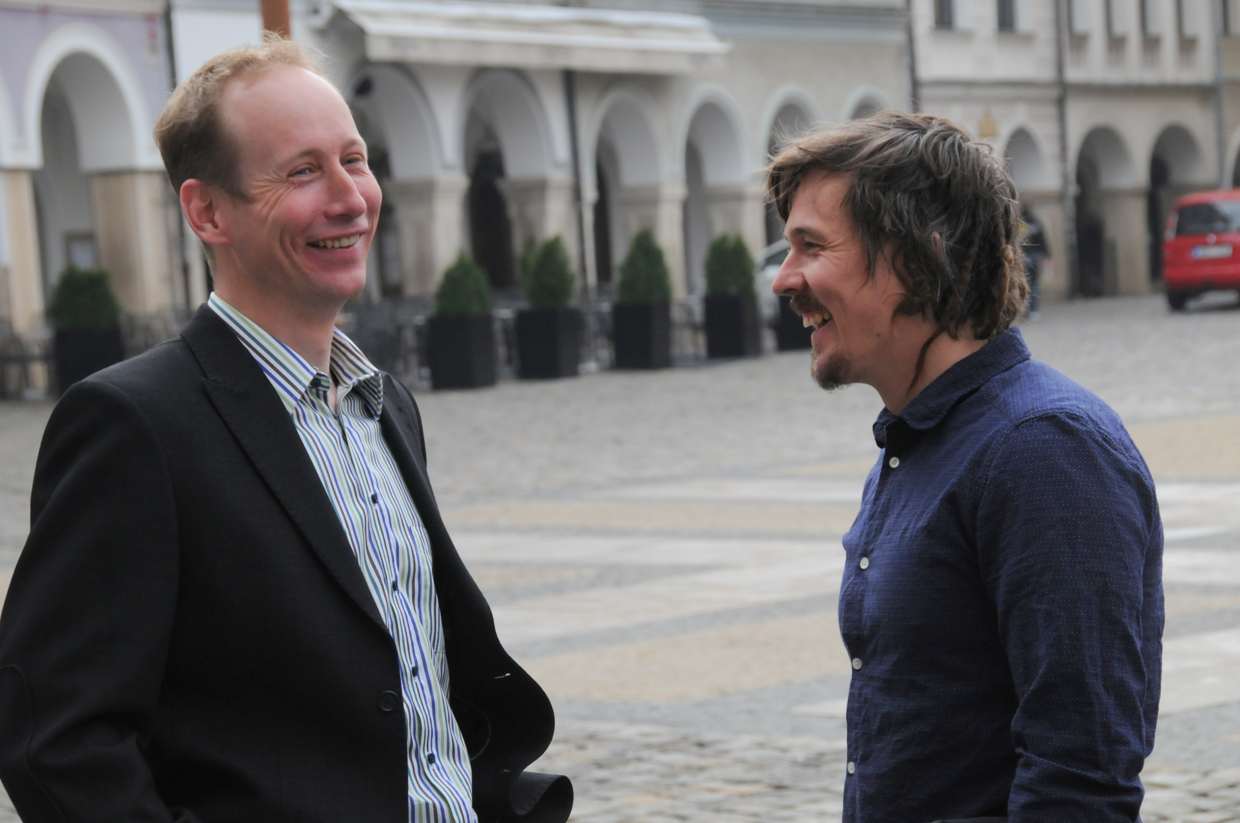 Běžec na lyžích Lukáš Bauer a sjezdař Ondřej Bank při setkání v Liberci