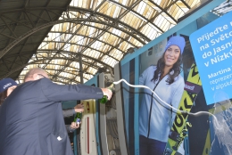 Tiskovou konferenci přerušila nevšední vsuvka. Z překrásných historických interiérů vládního salonku se všichni přítomní přesunuli na nástupiště číslo jedna, kam přijelo speciální Pendolino Martiny Dubovské, které bude díky partnerství úseku alpských disciplín a Českých drah vozit fanoušky na Světový pohár ve slovenské Jasné. Soupravu s velkou fotografií Dubovské poté před jeho první jízdou pokřtila sama závodnice, šéf úseku Aleš Krýzl a člen představenstva ČD Michal Štěpán.