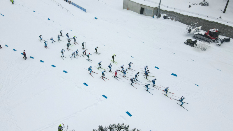Nedělní program nabídl neméně atraktivní závody volnou technikou s hromadným startem. Připraven byl 2,5 km dlouhý okruh, na který jako první vyrazily mladší dorostenky U16. Až do posledních stovek metrů 5 km dlouhé trati se držela pohromadě skupina pěti závodnic, z nichž nakonec nejrychlejší byla Nikola Plecháčová. Druhé místo ubránila Olivie Marečková, za níž o necelou sekundu dojela třetí Lucie Horká.