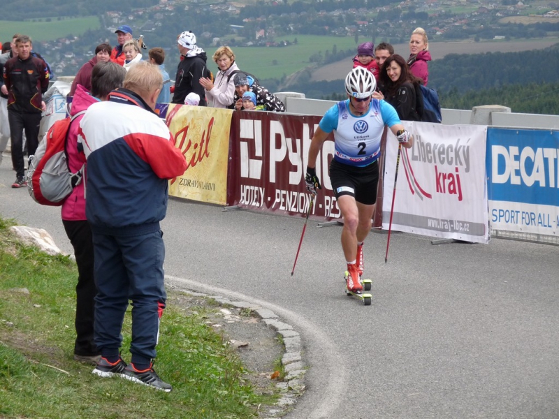 Pořádná porce dřiny a pouhých deset stupňů na vrcholu Ještědu čekalo na více než sto závodníků, kteří se postavili na start závodu mistrovství republiky v běhu na kolečkových lyžích do vrchu a zároveň finále seriálu Silivini Skiroll Classic. Závodit se začalo hned po startu v Janově Dole a vysoké tempo pořádně roztáhlo startovní pole. „Chvíli tam zatápěli Martin Jakš s Polákem Staregou, každou chvíli se střídali a nastupovali, až jsem si myslel, že nám ujedou už kilometr po startu. Chvílema jsem ty nástupy těžce chytal, ale potom přijel ještě Standa Řezáč a jeli jsme ve čtyřech,“ popisuje začátek závodu Lukáš Bauer. A tak se schylovalo k podobnému scénáři jako v loňském roce, kdy trojice Jakš, Bauer a Řezáč brzy odjela ostatním. Tentokrát si ale Stanislav Řezáč ve čtyřčlenné skupince dokázal dojet jen pro rychlostní prémii na pátém kilometru a pak už začal ztrácet, stejně jako Starega. Bylo jasné, že o vítězi se rozhodne mezi dvěma nejzkušenějšími reprezentanty.