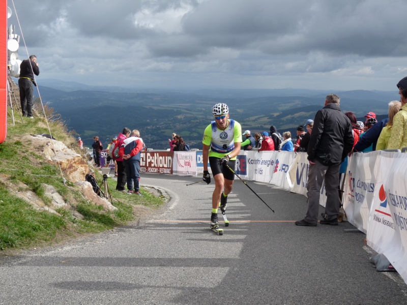 Stejně jako v sobotu na patnáctikilometrové trati ve Vesci, i v neděli na Ještědu vybojoval Martin Jakš titul mistra republiky na kolečkových lyžích, tentokrát v běhu do vrchu klasickou technikou. Závodník liberecké Dukly dokázal po náročném dvanáctikilometrovém stoupání najít dostatek sil na vítězný finiš, v němž porazil oddílového kolegu Lukáše Bauera. Právě tahle dvojice ujela zhruba v polovině závodu zbytku startovního pole a bylo jasné, že stejně jako loni budou bojovat o vítězství spolu. Nakonec je v cíli dělilo 11 sekund, s téměř dvouminutovým odstupem pak dojel další český reprezentant Miroslav Rypl. Mezi ženami byla nejrychlejší Sylwia Jaskowiecová, titul mistryně republiky patří Petře Novákové, která na Polku ztratila 37 sekund. Stříbro brala Adéla Boudíková, bronz Kateřina Beroušková.