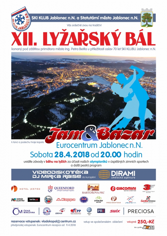 srdečně Vás zveme na XII. lyžařský bál u příležitosti ukončení zimní olympijské sezony a výročí 70 let od založení SKI KLUBU JABLONEC NAD NISOU, který se koná už tuto sobotu 28. dubna. Zároveň zavzpomínáme na zisk bronzové medaile v běhu na lyžích na ZOH Calgary 1988 s přímými aktéry tohoto úspěchu.