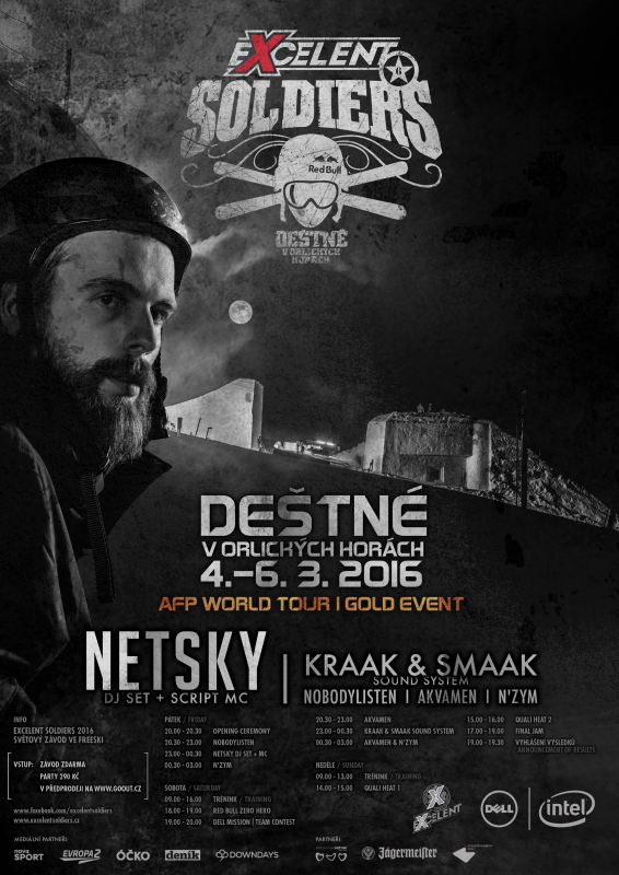 Závod ve freeski Excelent Soldiers, který se v Deštné v Orlických horách pojede od 4. do 6. března musel oproti původním plánům projít změnami. Organizátoři se vzhledem ke komplikovanosti přeletů jezdců mezi zastávkami Světové tour rozhodli přesunout finálové boje na neděli.