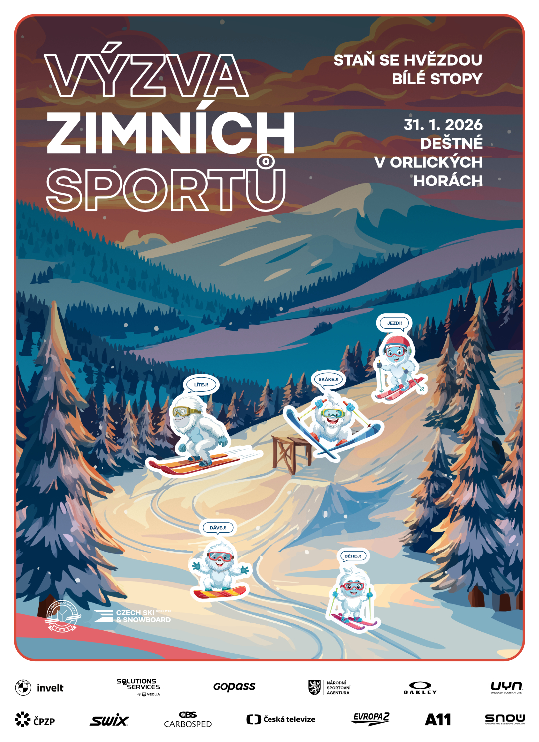Výzva zimních sportů se vrací se svým druhým ročníkem a znovu nabídne dětem i rodičům jedinečnou možnost objevit svět lyžování a snowboardingu hravou formou. V sobotu 31. ledna 2026 se lyžařský areál v Deštném v Orlických horách promění v pohádkovou stezku plnou sportovních stanovišť, kde si děti pod dohledem profesionálních trenérů vyzkouší různé zimní disciplíny, budou sbírat razítka a na závěr získají diplomy i věcné ceny. A těšit se mohou i na některé české reprezentanty.