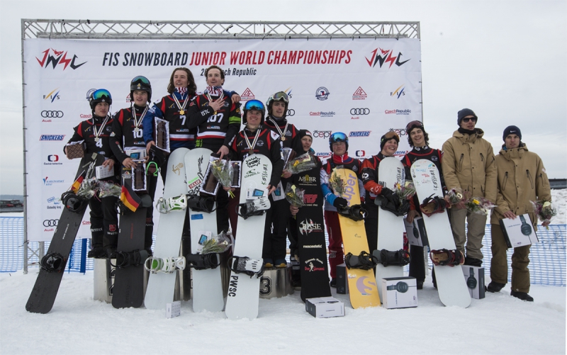 FIS Mistrovství světa juniorů ve snowboardingu má za sebou kompletně odjeté soutěže v disciplíně snowboardcross a po včerejším závodě mužů a žen byl na dnešním programu závod týmů v obou kategoriích. Do závodu nastoupilo 16 dvojic mezi ženami, mezi muži pak bylo 27 týmů. Na startovním poli se objevily i tři české mužské a dva ženské týmy.