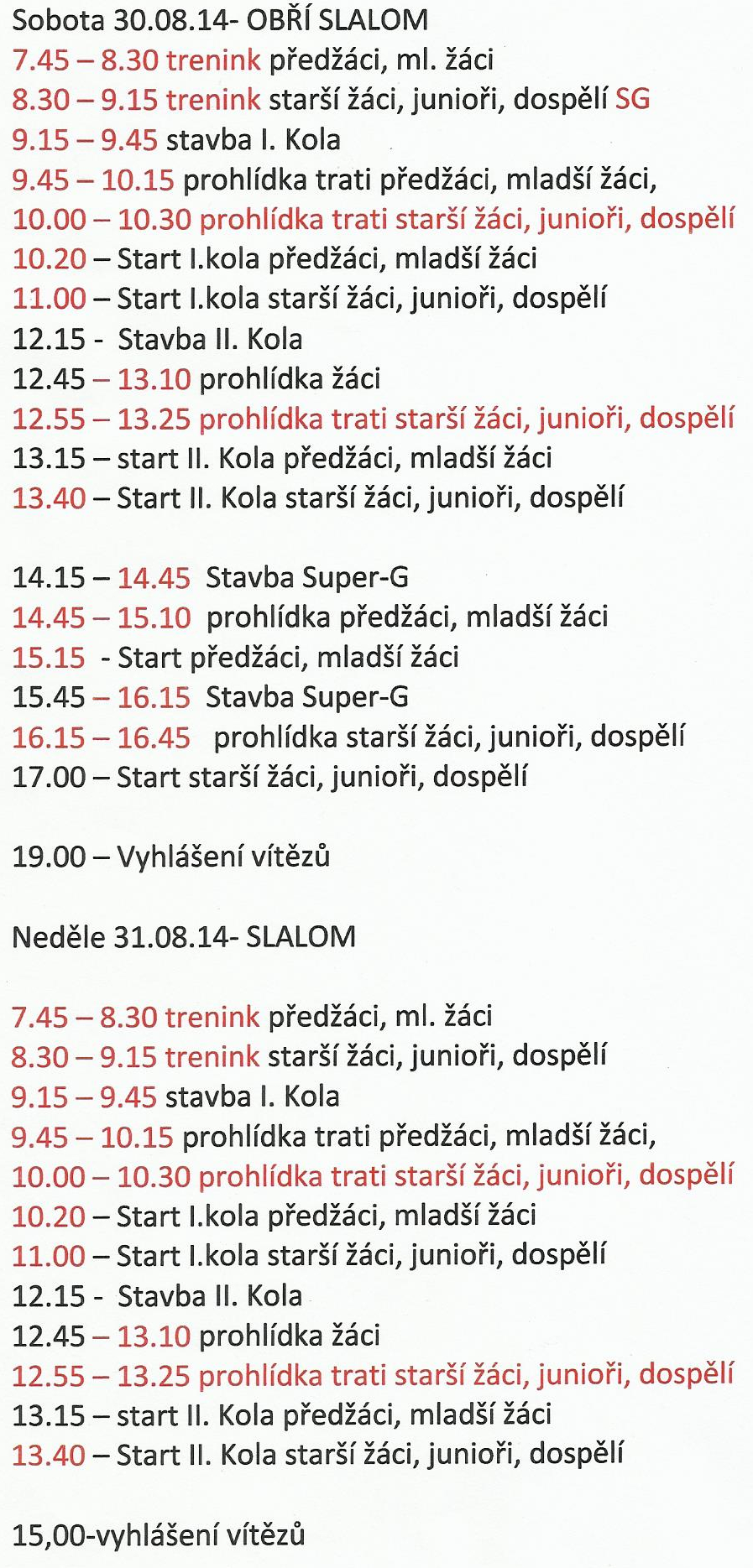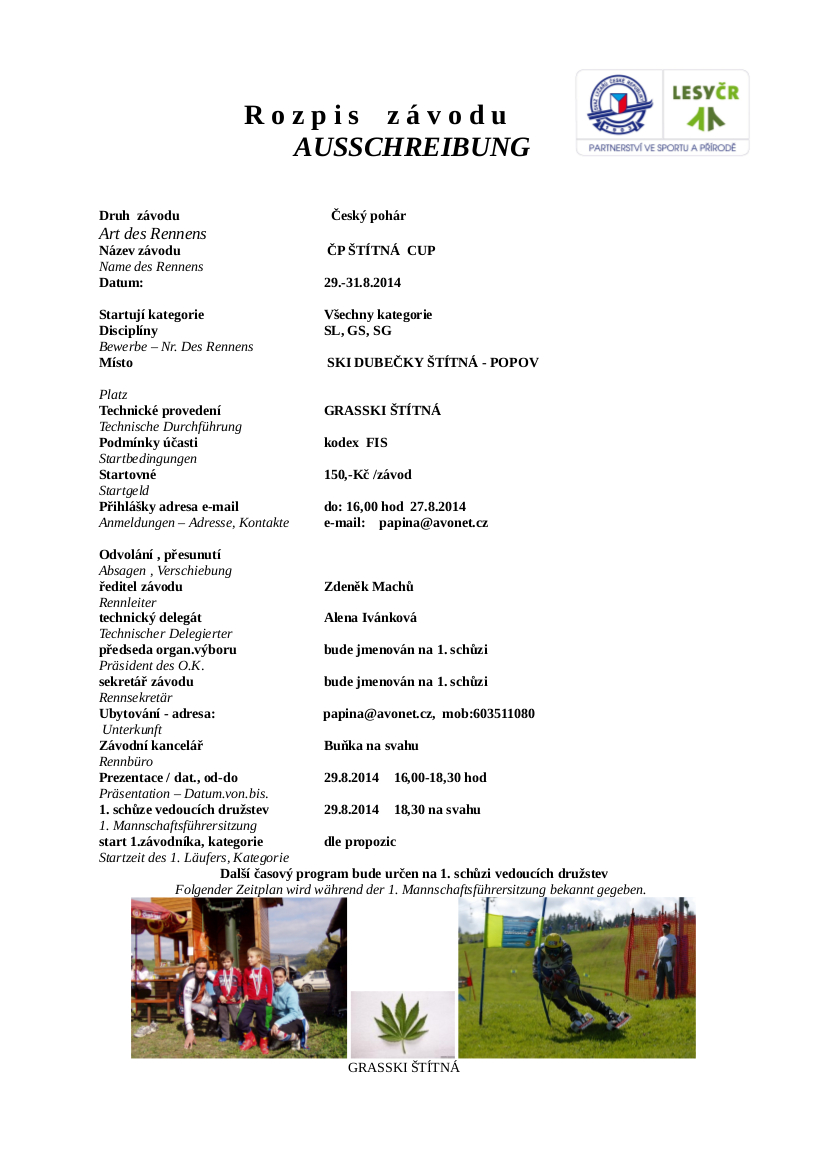Rozpis na 3. závod českého poháru " Štítná nad Vláří"